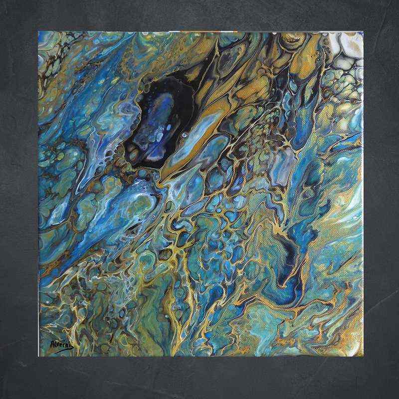 Oeuvre originale unique dans les tons bleutés et or (pour les principales nuances).