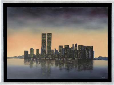 1984- il est 5h, ou à peu près...vu depuis le pont du Queen Elizabeth 2, Lower Manhattan se réveille. Les tours jumelles sont encore là...