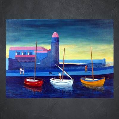 La toile est tendue par l’utilisation de clés au dos du châssis. Le tableau est finition vernis satiné.