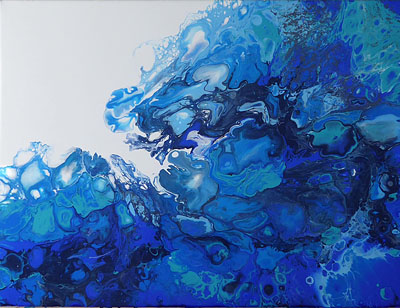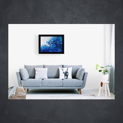 La "vague" continue sur les bords du tableau ce qui permet de pouvoir l'accrocher ou le poser tel quel sans cadre, même s'il sera bien sûr sublimé dans une caisse américaine (voir l'exemple en photo ci-dessous).