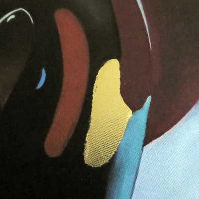 La zone en feuille d'or a été recouverte par mes soins d'une feuille imitation or (Feuille Artmétal inaltérable, imitation or) comme sur l'original - C'est le même procédé que pour dorer un cadre à la feuille - voir photo de détail ci-dessous.