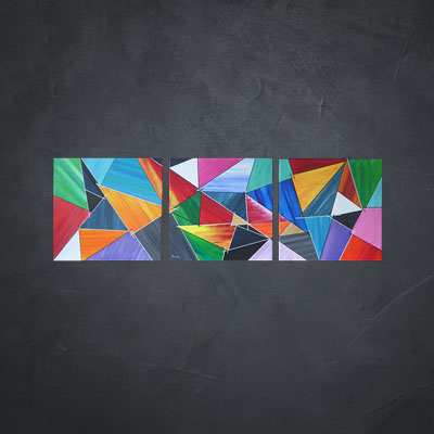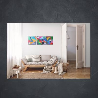Tryptique composé de 3 toiles de 40 x 40 cm - dimension totale 120 cm x 40 cm, mais un peu plus si vous espacez chaque toile de quelques centimètres.