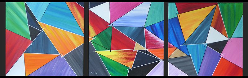Le tableau doit son nom a un triangle situé au centre et qui est recouvert d'une feuille d'Or Art Métal inaltérable (imitation or) - voir photo du détail ci-dessous.