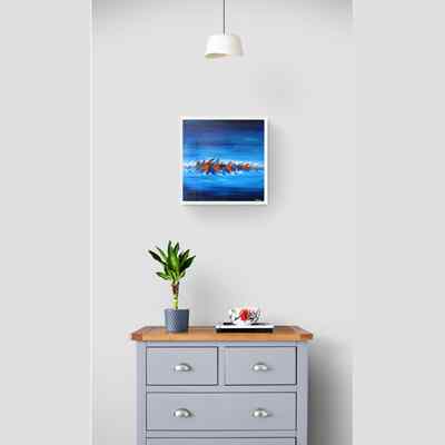 Le tableau est vernis finition brillant (mais brillant léger). Le tour du tableau est peint en noir, ce qui vous permet un accrochage sans cadre si vous le souhaitez.