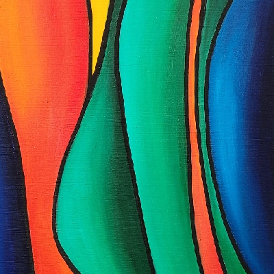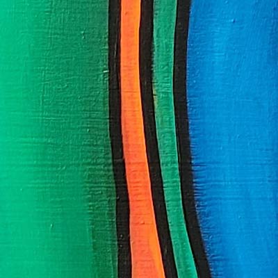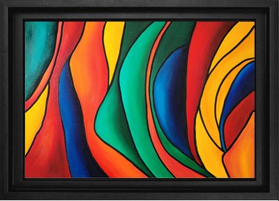 Les bords du tableau sont peints en blanc ce qui permet un accrochage sans cadre. (même si un cadre comme une caisse américaine le mettra en valeur)