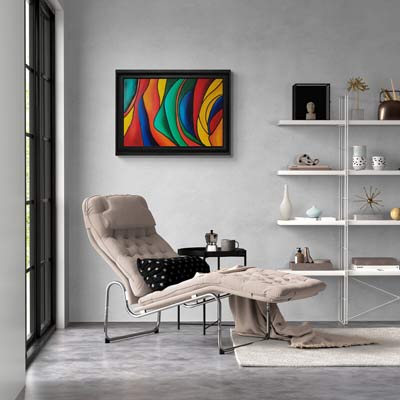 Cette toile est livrée avec le système d'accroche monté sur le châssis, donc prête à être suspendue, pour une version sans cadre.
